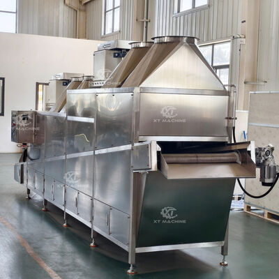 Komplettes automatisiertes System zum Frittieren verschiedener Nüsse, darunter Erdnüsse, Cashewnüsse, Erbsen, Bohnenkerne und Sonnenblumenkerne. Speziell für Lebensmittelverarbeitungsbetriebe entwickelt, um die Produktionseffizienz zu steigern und die Raumnutzung zu optimieren.