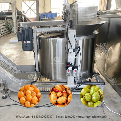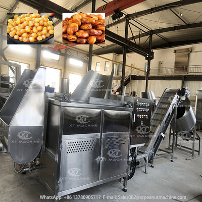 Professionelle Frittiermaschine für Lebensmittel, konzipiert für die effiziente Chargenverarbeitung von Erdnüssen, Pommes Frites und verschiedenen Lebensmittelprodukten mit präziser Temperaturregelung und automatischem Betrieb.