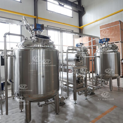 Der Erdnussbutterkühl-/Mischbehälter ist durch eine Erdnussbutterpumpe und Rohre verbunden und ist eine Schlüsselvorrichtung in der Erdnussbutterproduktion.