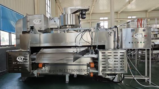 Dieser industrielle Röster verfügt über ein flaches Tablett, das sich während des Betriebs horizontal dreht, wodurch sichergestellt wird, dass beschichtete Nüsse gleichmäßig erhitzt werden, um optimale Röstergebnisse und eine gleichbleibende Produktqualität zu erzielen.